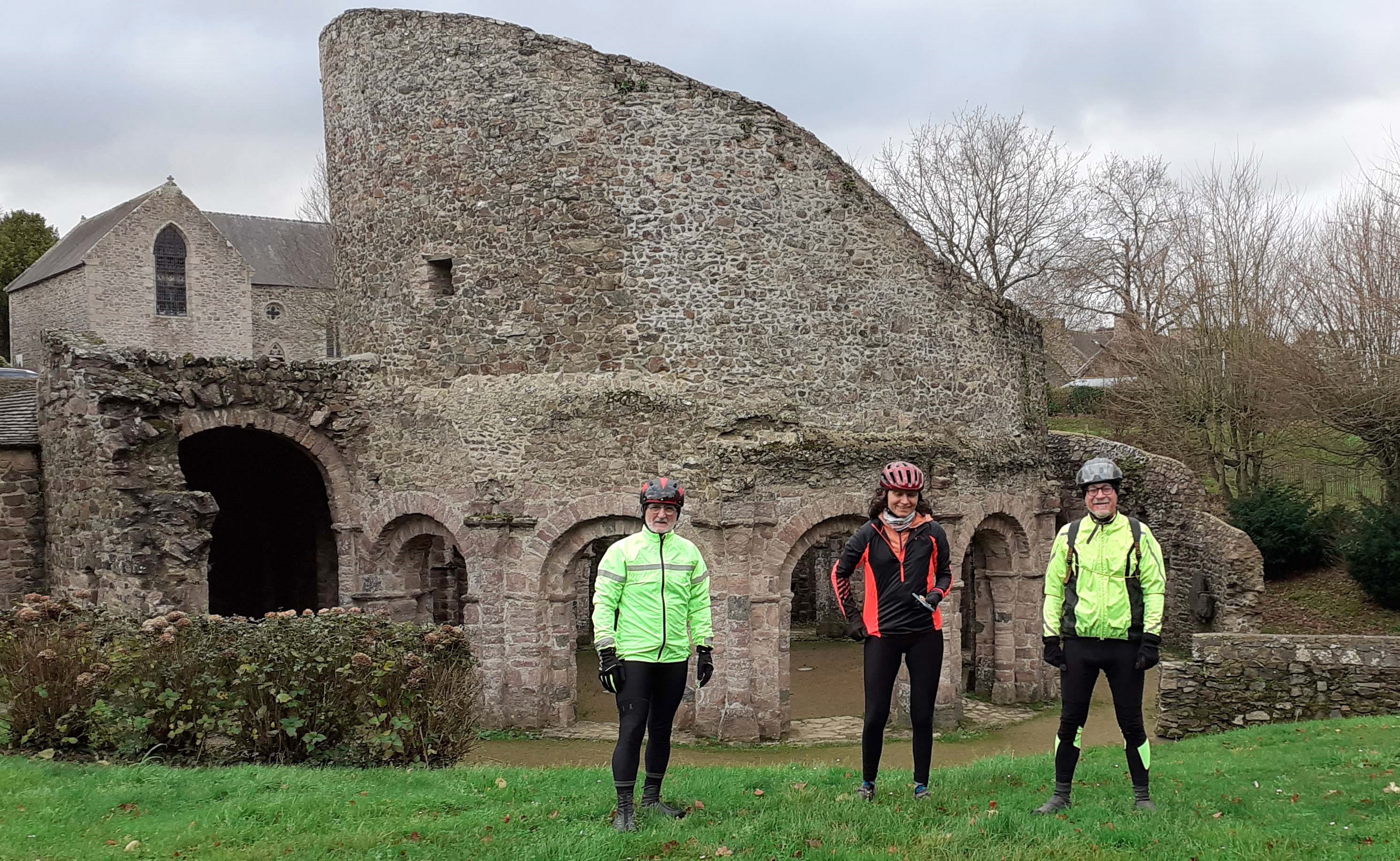 Quatre cyclos de l'A.C.G. ont bravé la pluie et surtout le vent ce dimanche 8 décembre. Leur périple les a menés au Temple de Lanleff qui est sans doute le plus ancien édifice du Haut Moyen-Age encore visible en Côtes d'Armor. Remarquable par ses deux enceintes concentriques, du plus pur style roman primitif, il compté plus de 140 éléments décoratifs qui ornent les chapiteaux et les bases de colonnes. Le charme du bâtiment se trouve renforcé par le mystère de sa véritable origine toujours inconnue et débattue...